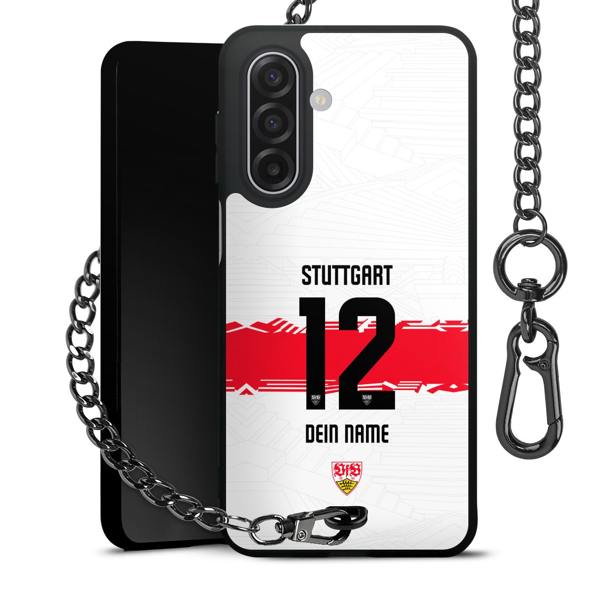 - Mattschwarze Handyhülle mit Metallkette