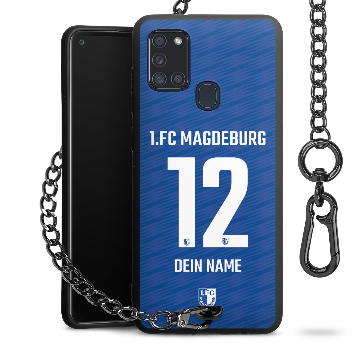 Die Handyhülle verfügt über eine mittig am unteren Rand platzierte Öse, an der die Metallkette stabil befestigt ist. Bestelle die Hülle einfach für Dein Smartphone-Modell, dann passt sie wie angegossen und Du brauchst sie bloß einmal anzudrücken. Handy in die Tasche, Karabiner an den Hosenbund – schon kann die Party starten.