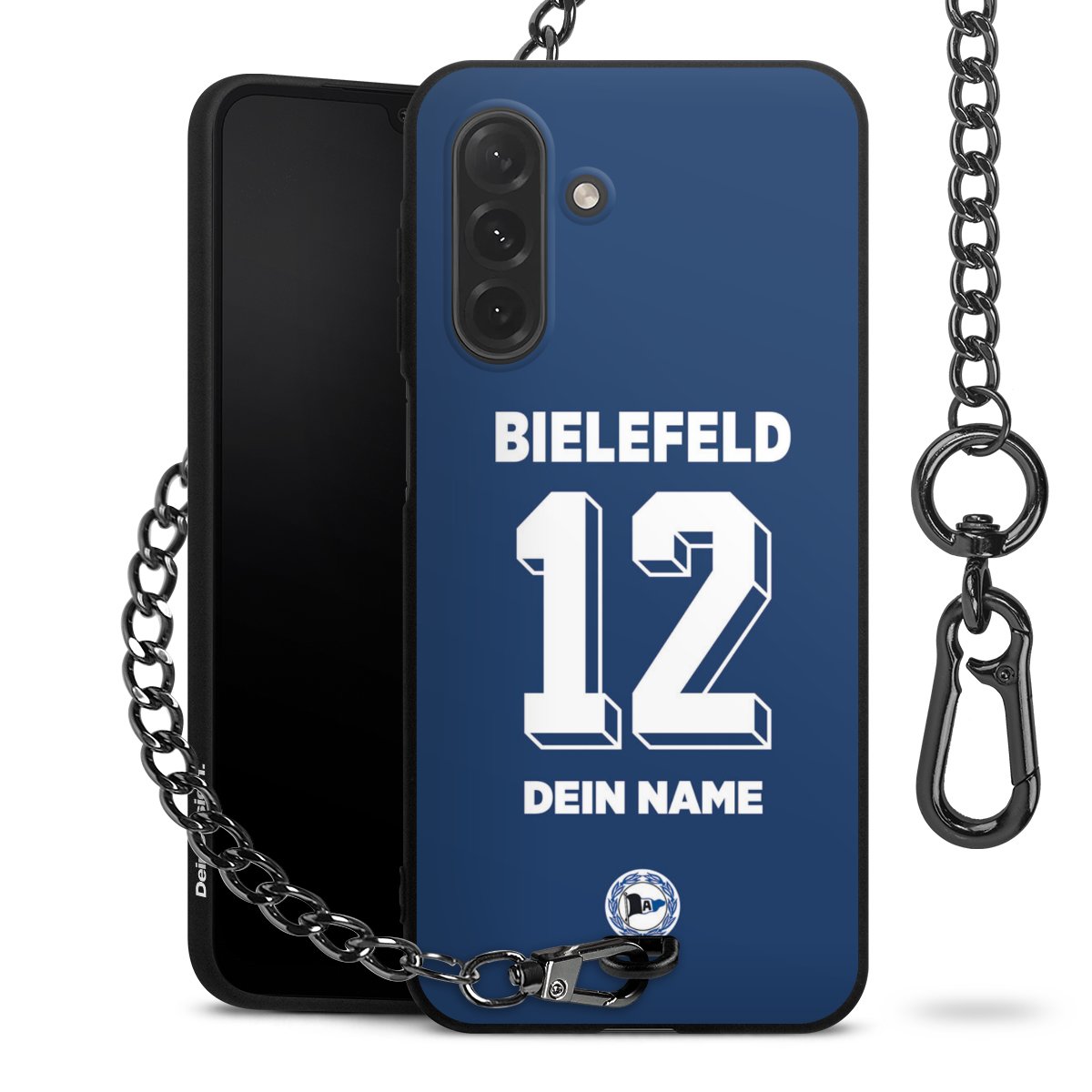- Mattschwarze Handyhülle mit Metallkette