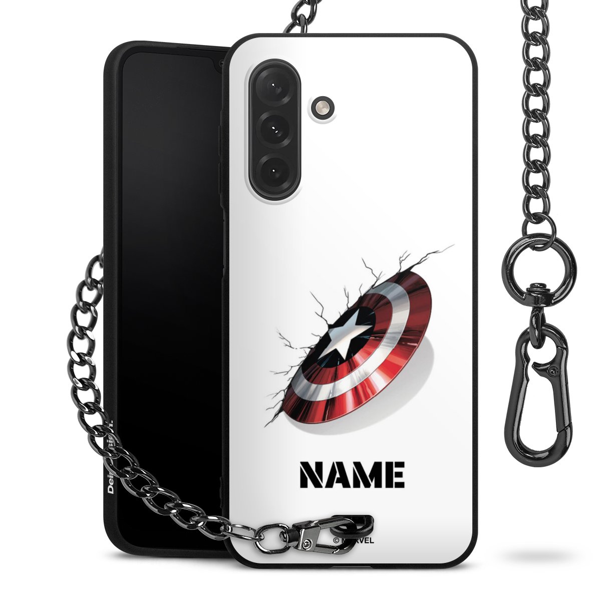 - Mattschwarze Handyhülle mit Metallkette