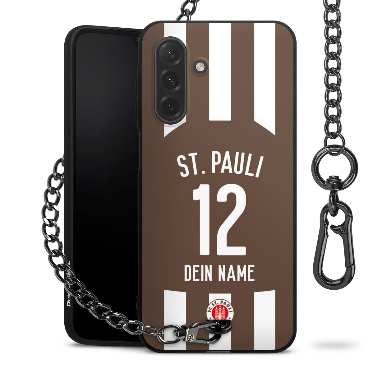 - Mattschwarze Handyhülle mit Metallkette