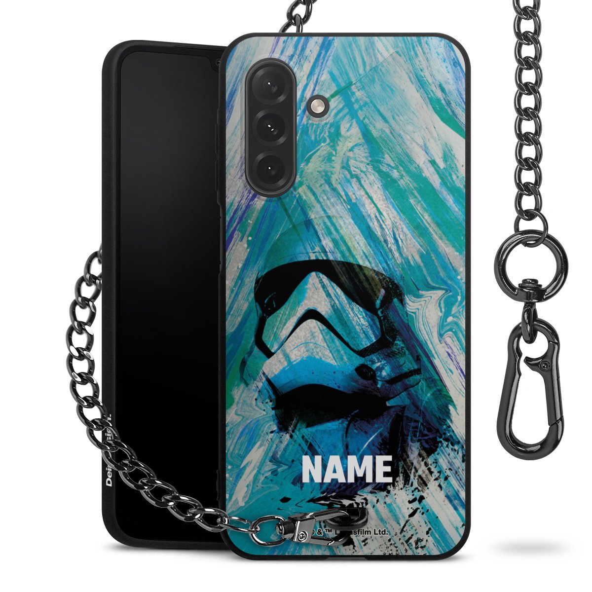 Die mattschwarze Silikon-Handyhülle besteht aus robustem TPU (thermoplastisches Polyurethan). Sie ist flexibel und schützt Dein Smartphone vor Stößen und Kratzern. Die Kette sowie der Karabinerhaken sind aus Metall in Gunmetal-Optik gefertigt. Für dieses Produkt kommen ausschließlich TÜV-geprüfte Materialien zum Einsatz.