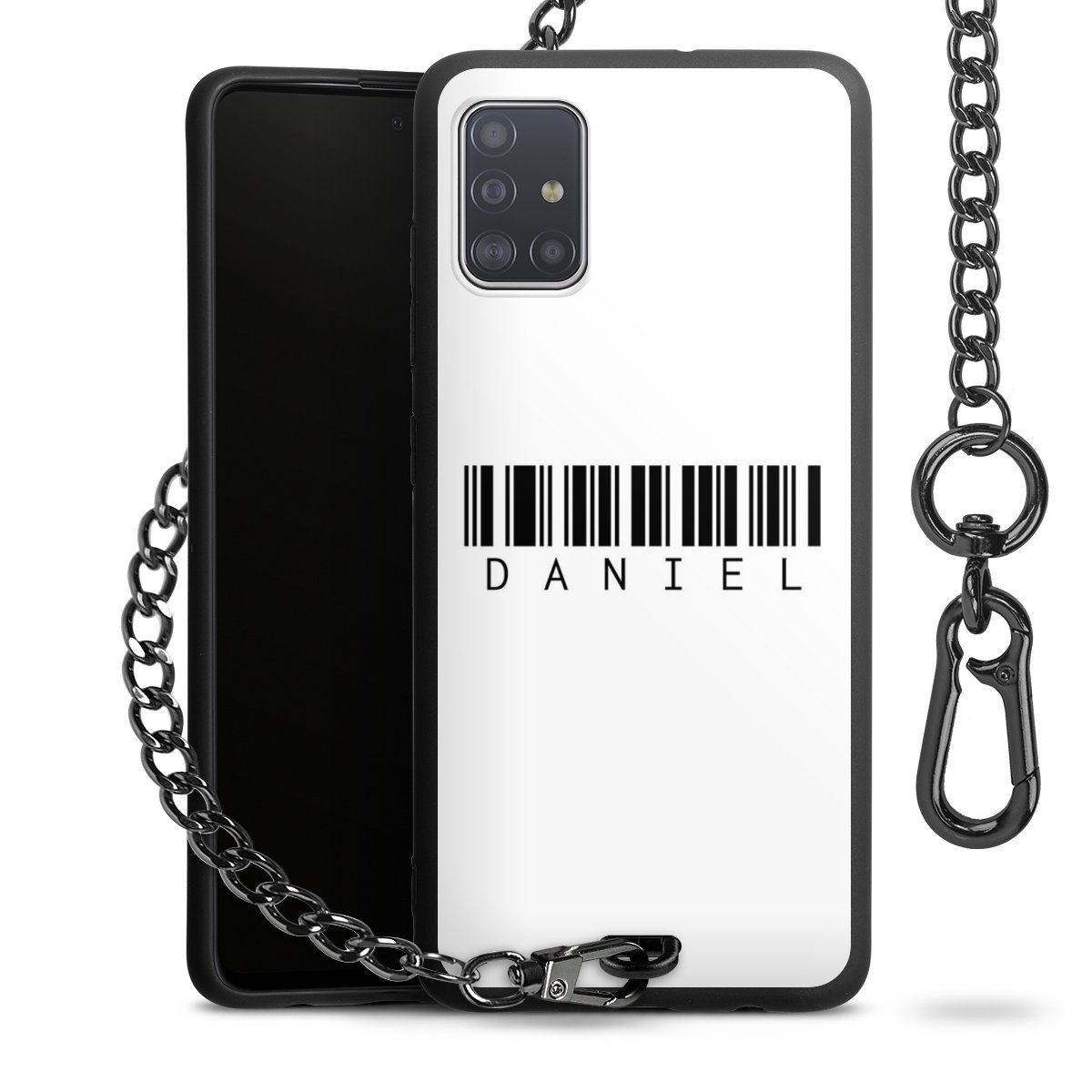 Die Handyhülle verfügt über eine mittig am unteren Rand platzierte Öse, an der die Metallkette stabil befestigt ist. Bestelle die Hülle einfach für Dein Smartphone-Modell, dann passt sie wie angegossen und Du brauchst sie bloß einmal anzudrücken. Handy in die Tasche, Karabiner an den Hosenbund – schon kann die Party starten.
