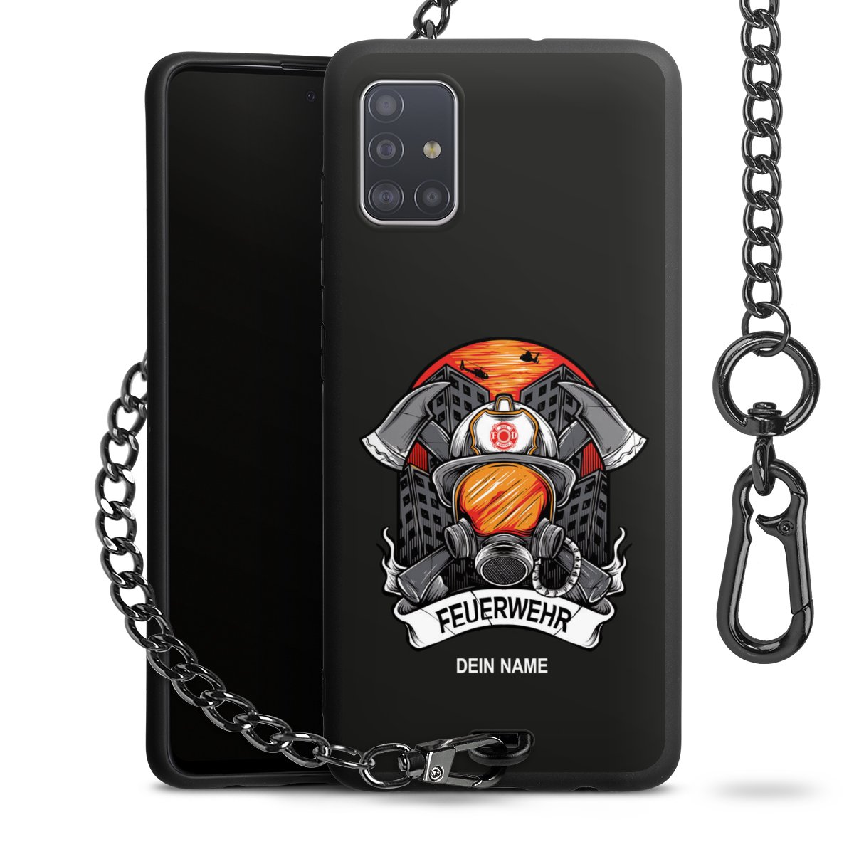 - Mattschwarze Handyhülle mit Metallkette