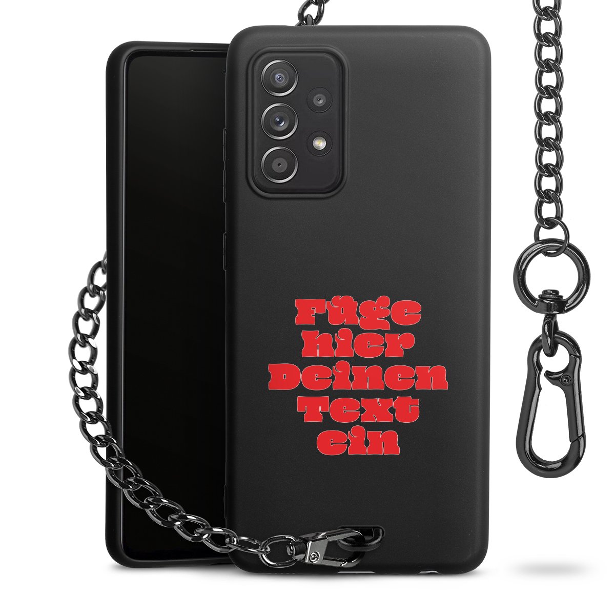 - Mattschwarze Handyhülle mit Metallkette