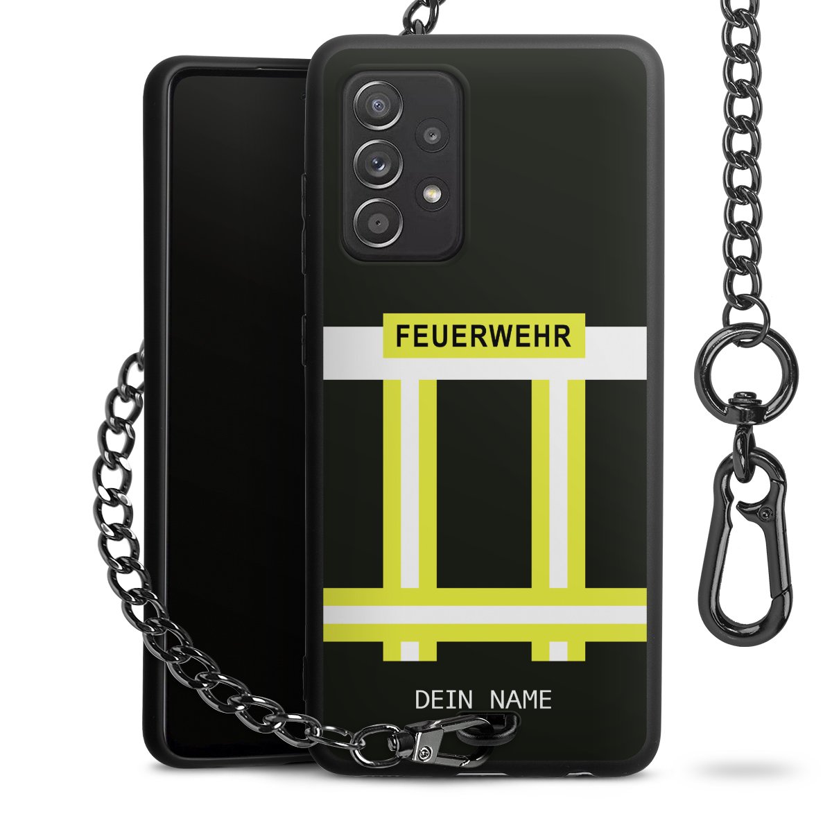 - Mattschwarze Handyhülle mit Metallkette