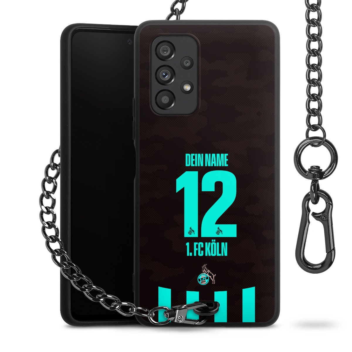 Die mattschwarze Silikon-Handyhülle besteht aus robustem TPU (thermoplastisches Polyurethan). Sie ist flexibel und schützt Dein Smartphone vor Stößen und Kratzern. Die Kette sowie der Karabinerhaken sind aus Metall in Gunmetal-Optik gefertigt. Für dieses Produkt kommen ausschließlich TÜV-geprüfte Materialien zum Einsatz.