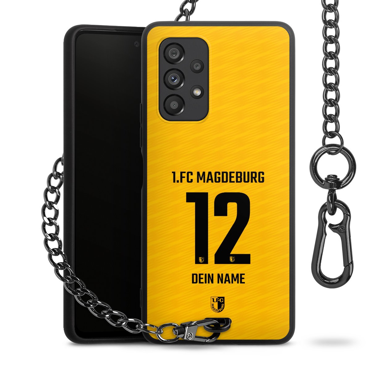 - Mattschwarze Handyhülle mit Metallkette