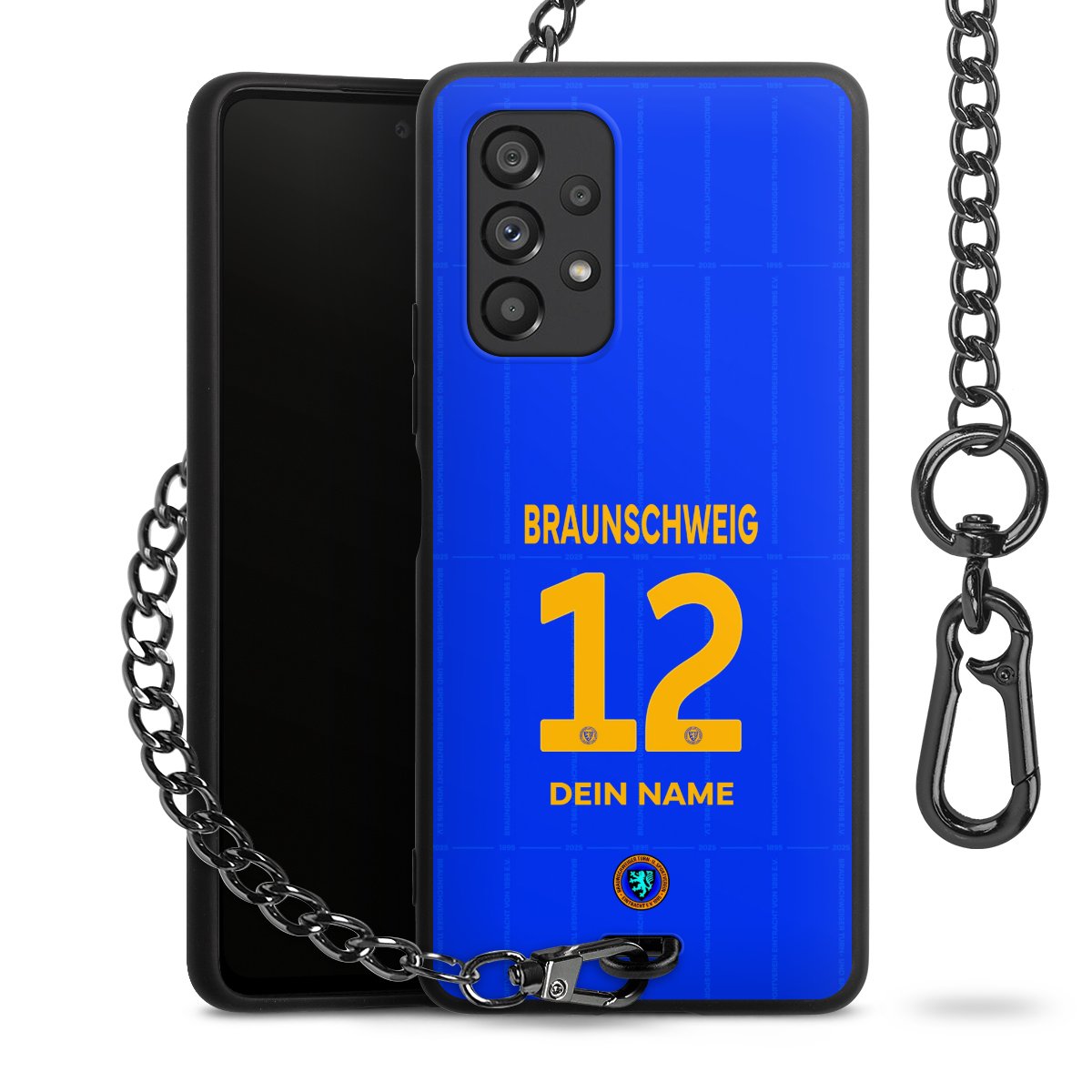 - Mattschwarze Handyhülle mit Metallkette