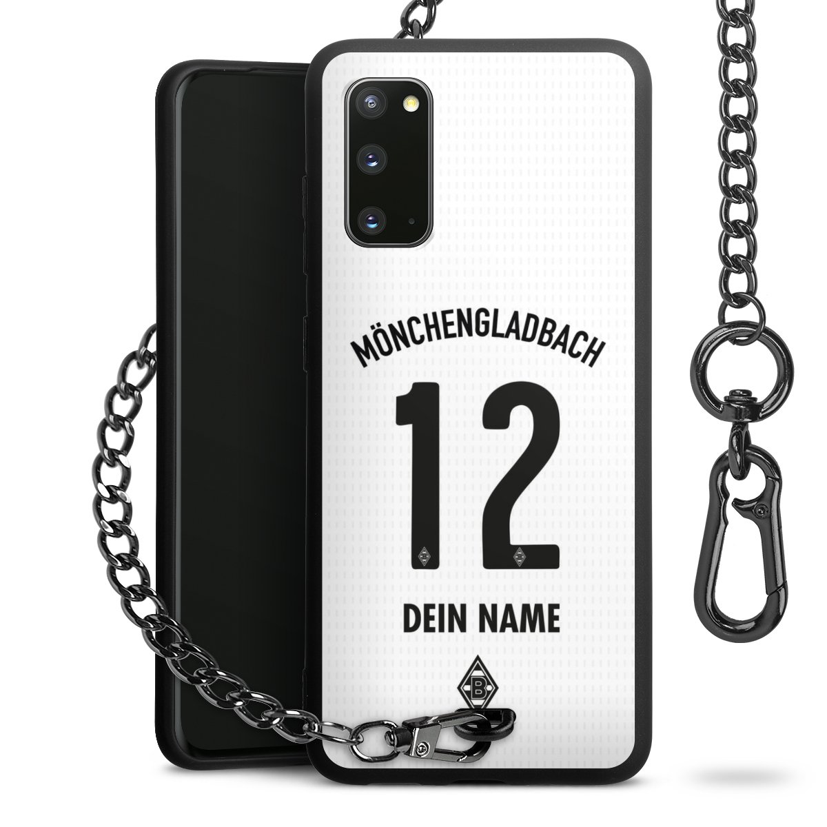 Die mattschwarze Silikon-Handyhülle besteht aus robustem TPU (thermoplastisches Polyurethan). Sie ist flexibel und schützt Dein Smartphone vor Stößen und Kratzern. Die Kette sowie der Karabinerhaken sind aus Metall in Gunmetal-Optik gefertigt. Für dieses Produkt kommen ausschließlich TÜV-geprüfte Materialien zum Einsatz.