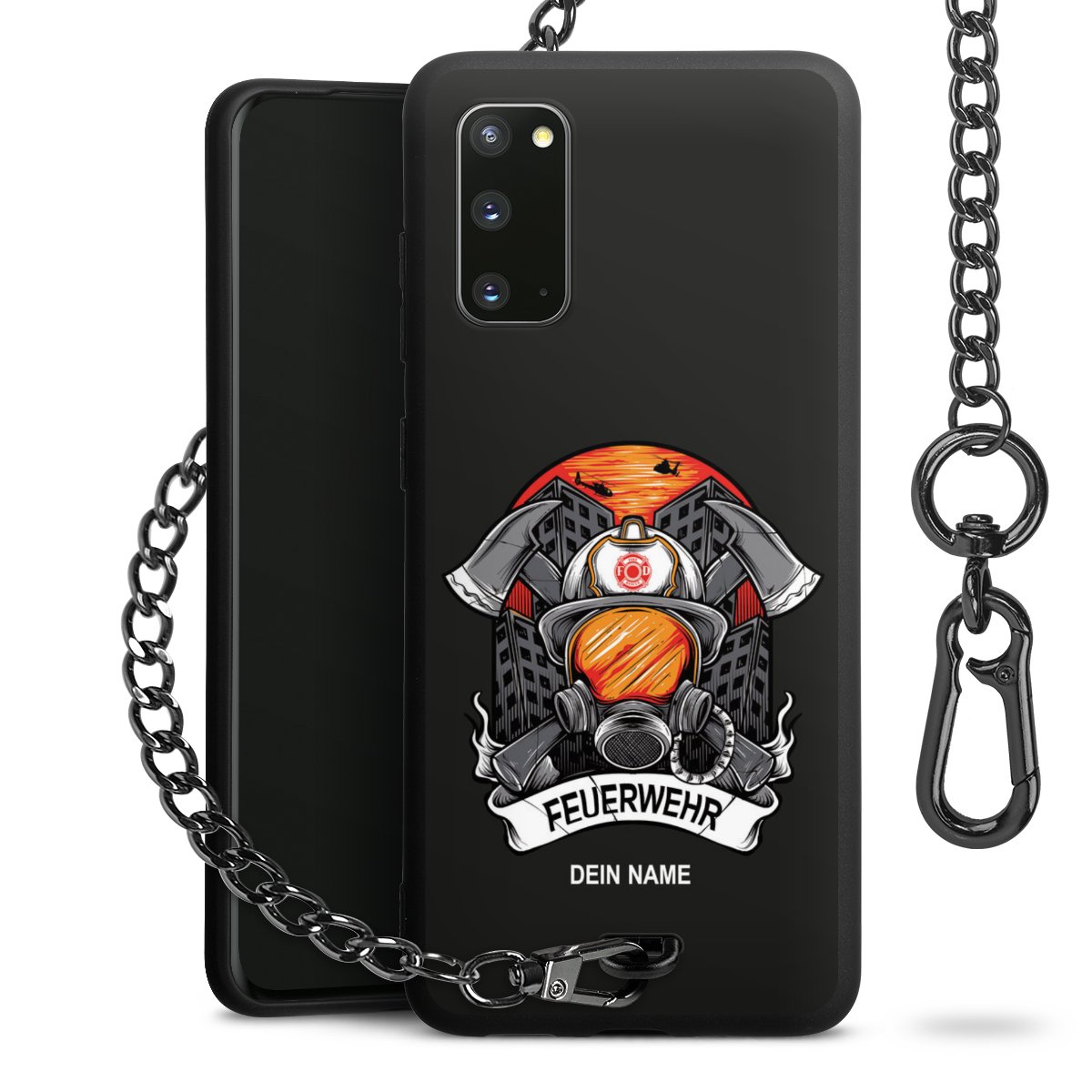 - Mattschwarze Handyhülle mit Metallkette