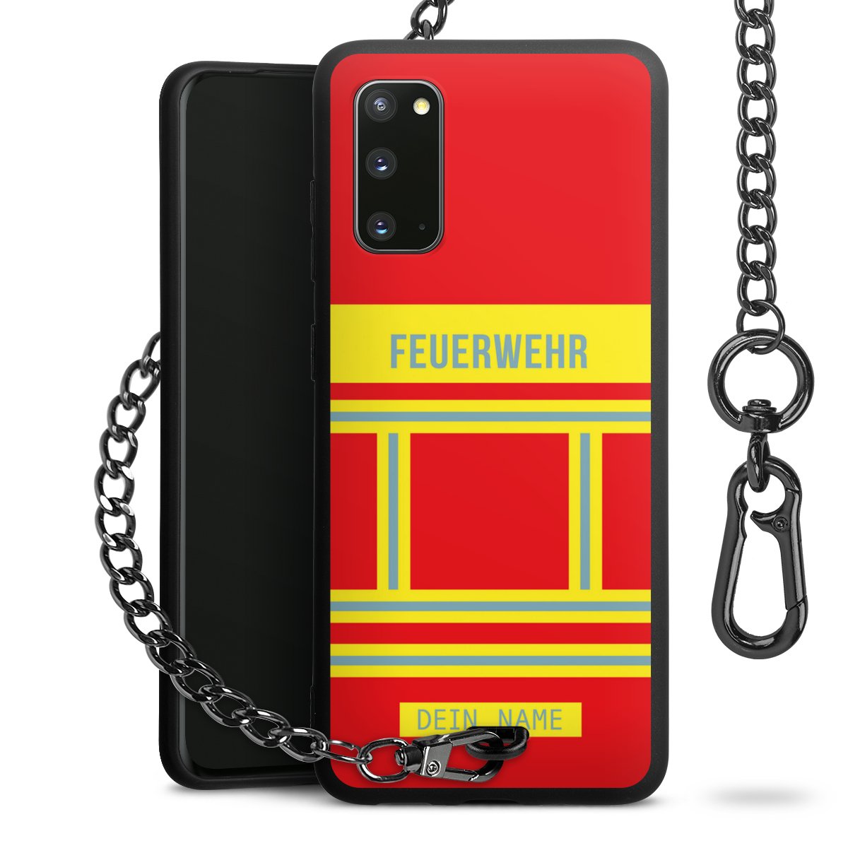 - Mattschwarze Handyhülle mit Metallkette