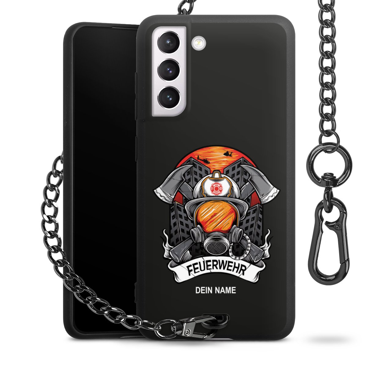 - Mattschwarze Handyhülle mit Metallkette