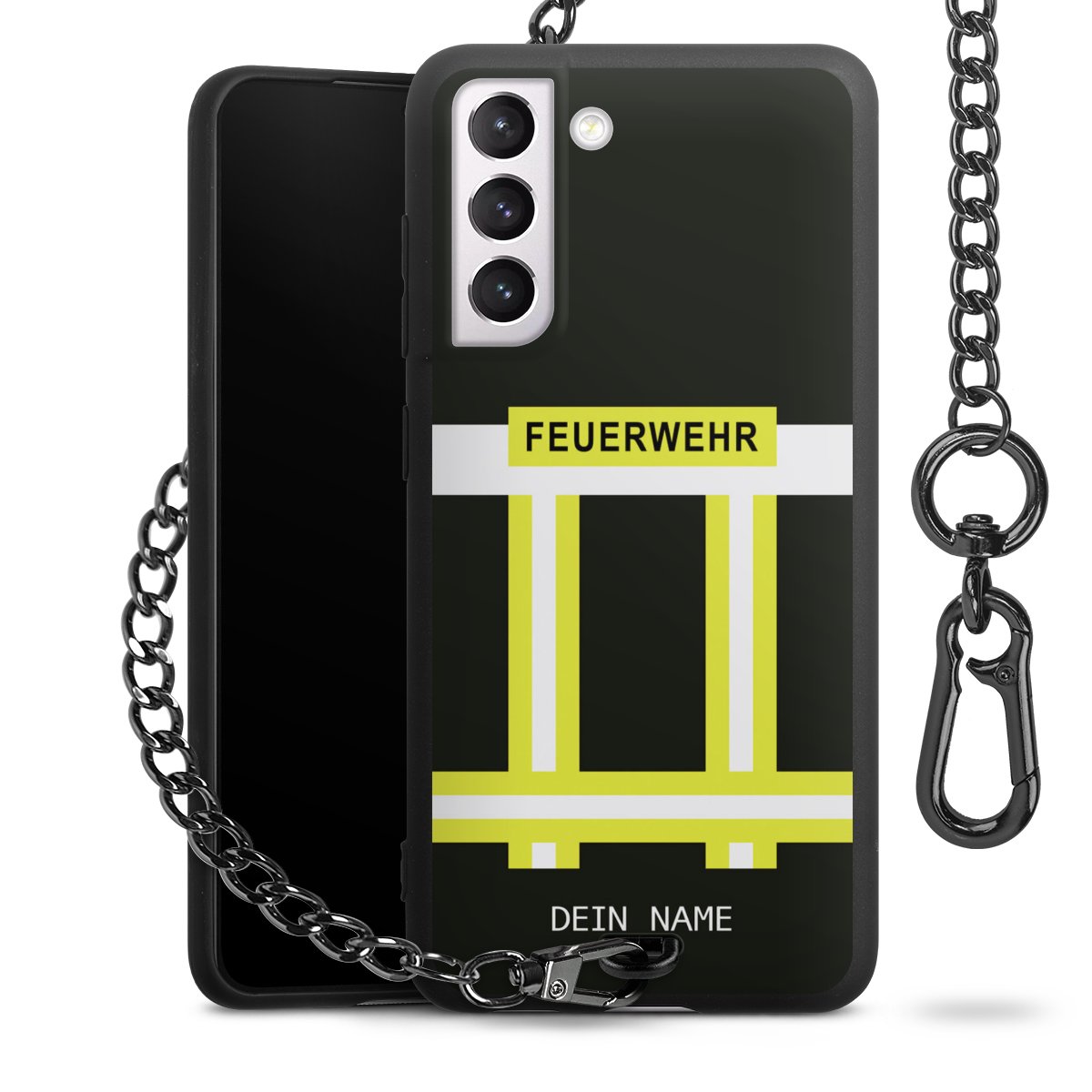 - Mattschwarze Handyhülle mit Metallkette