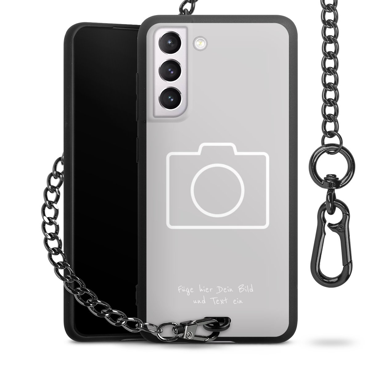 - Mattschwarze Handyhülle mit Metallkette
