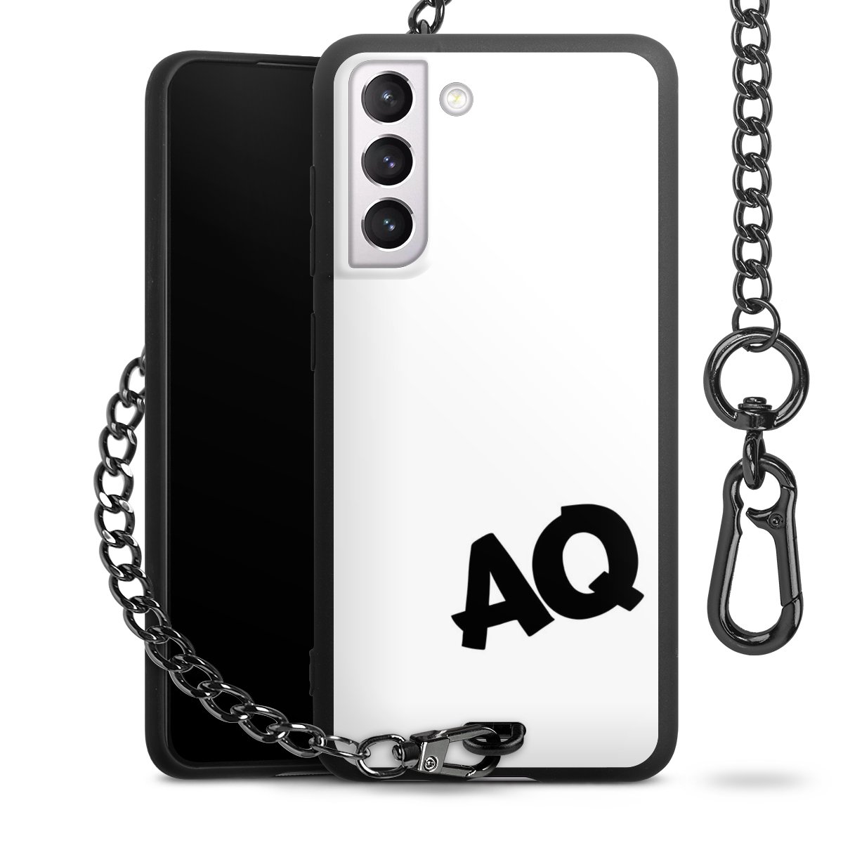 - Mattschwarze Handyhülle mit Metallkette