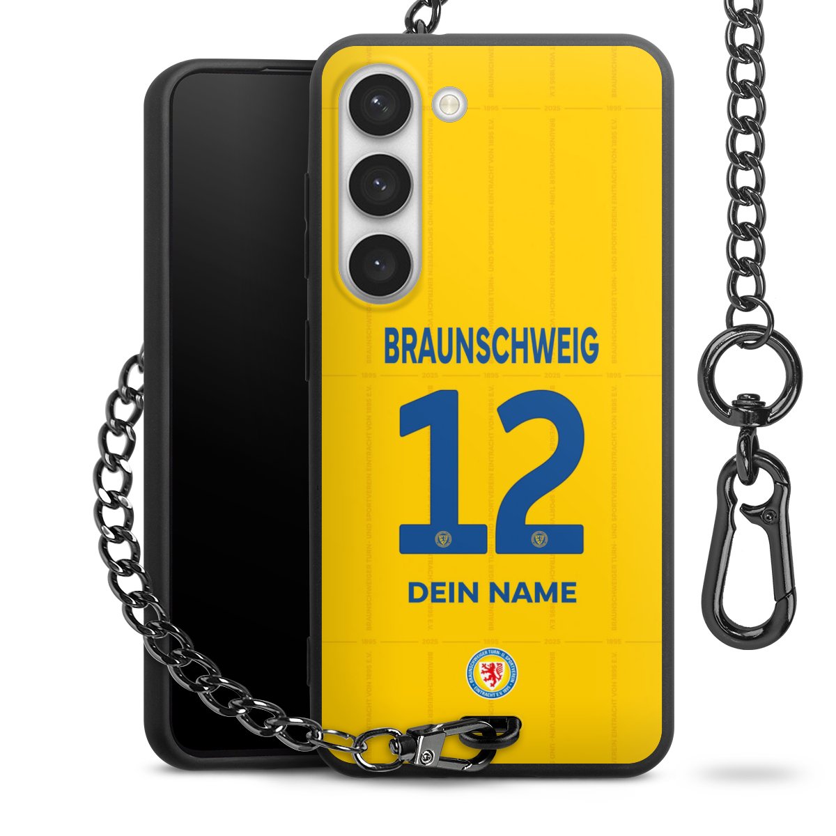 - Mattschwarze Handyhülle mit Metallkette