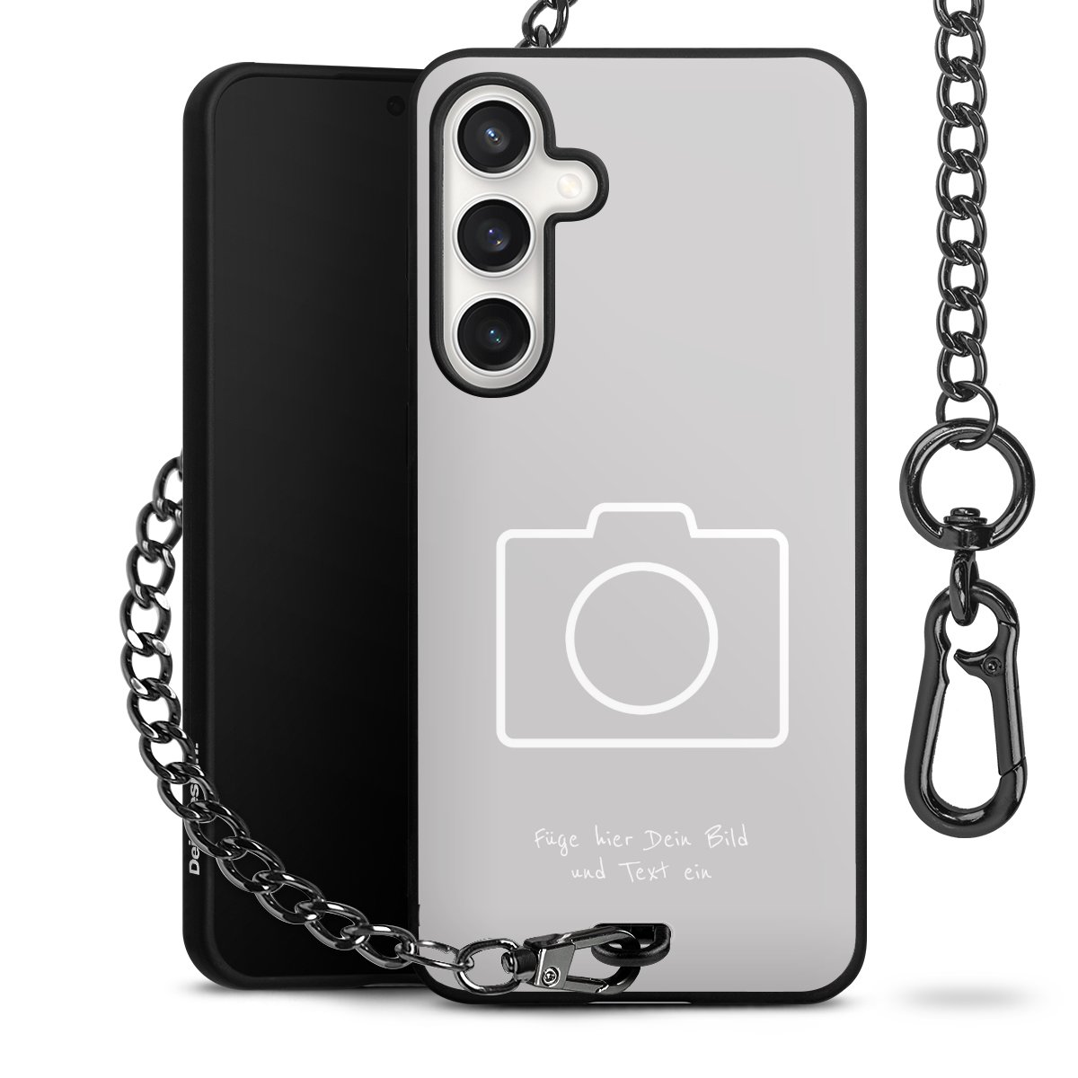 - Mattschwarze Handyhülle mit Metallkette