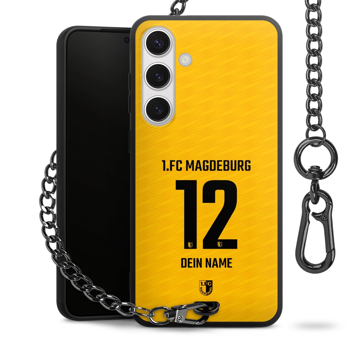 - Mattschwarze Handyhülle mit Metallkette