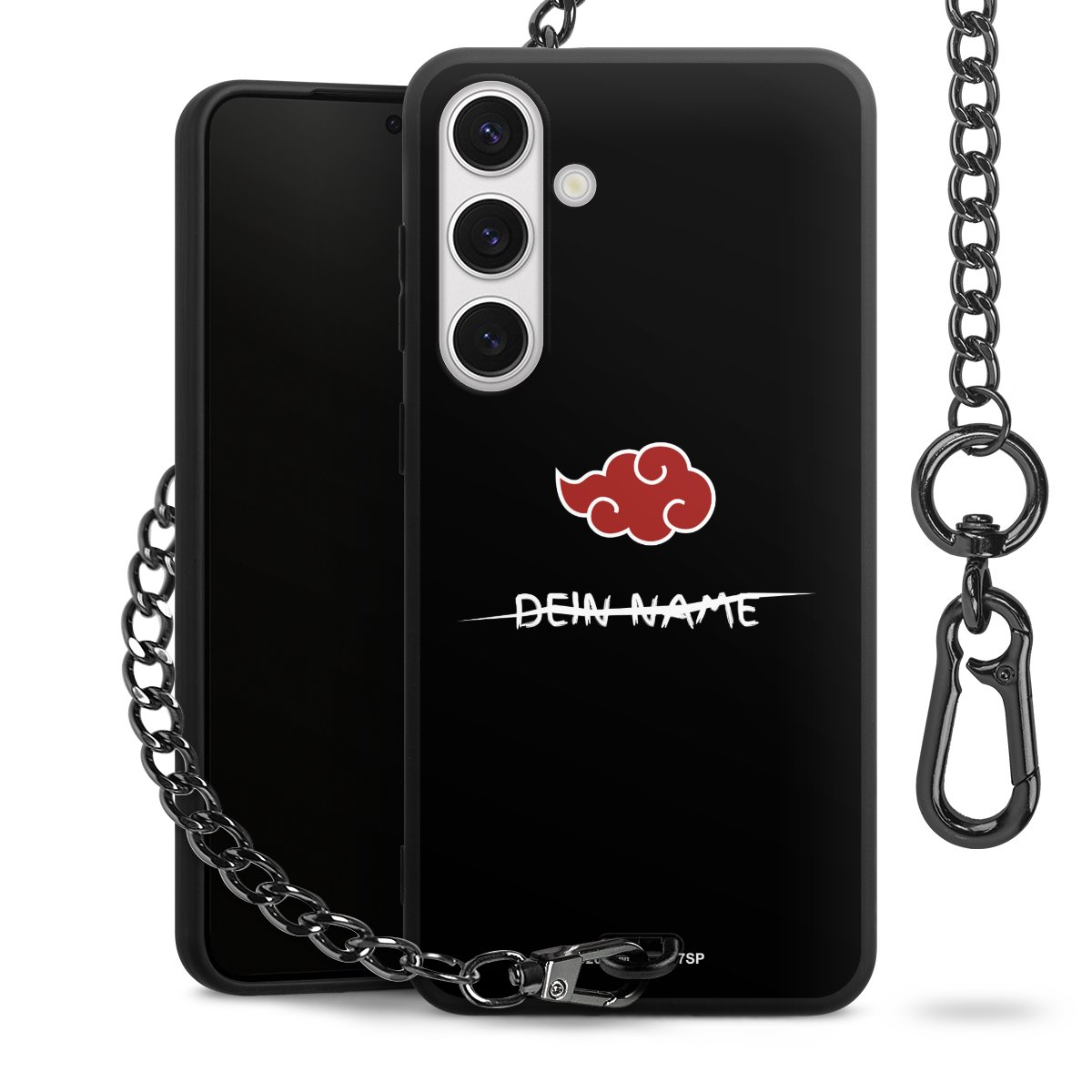 - Mattschwarze Handyhülle mit Metallkette