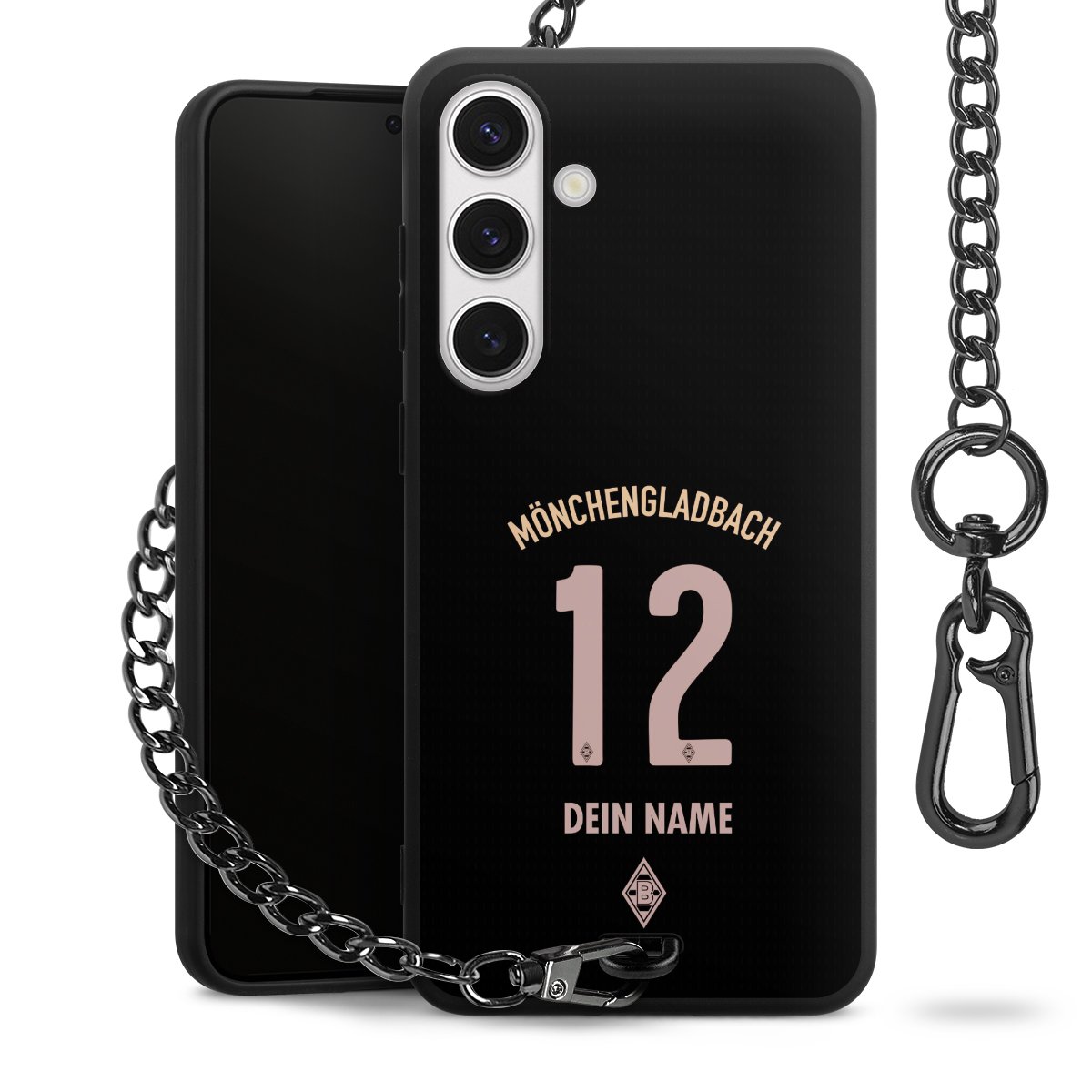 Die mattschwarze Silikon-Handyhülle besteht aus robustem TPU (thermoplastisches Polyurethan). Sie ist flexibel und schützt Dein Smartphone vor Stößen und Kratzern. Die Kette sowie der Karabinerhaken sind aus Metall in Gunmetal-Optik gefertigt. Für dieses Produkt kommen ausschließlich TÜV-geprüfte Materialien zum Einsatz.