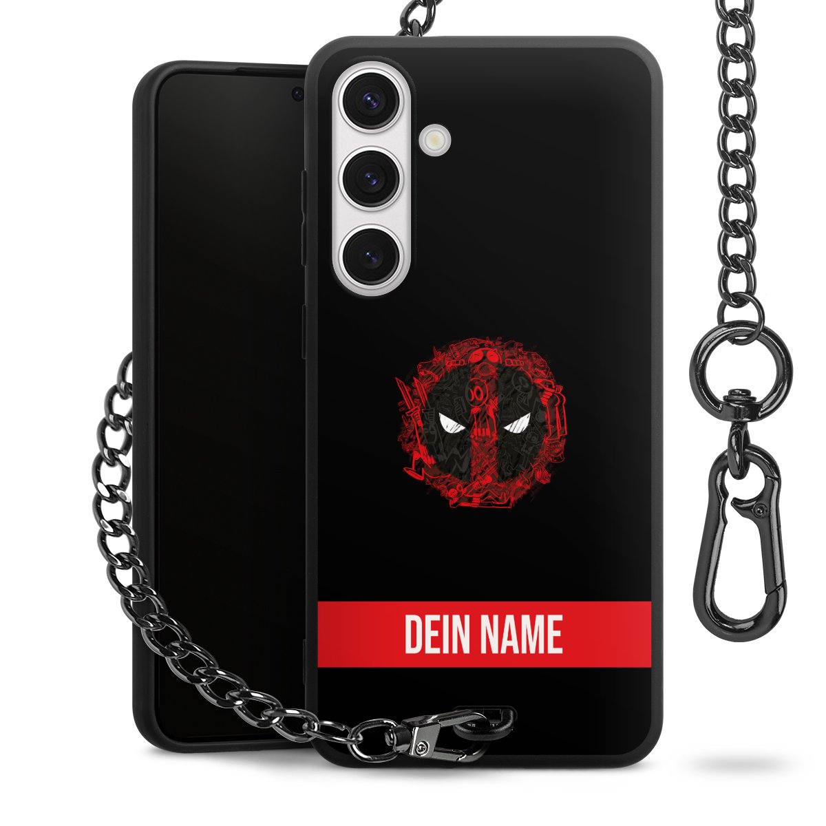 - Mattschwarze Handyhülle mit Metallkette