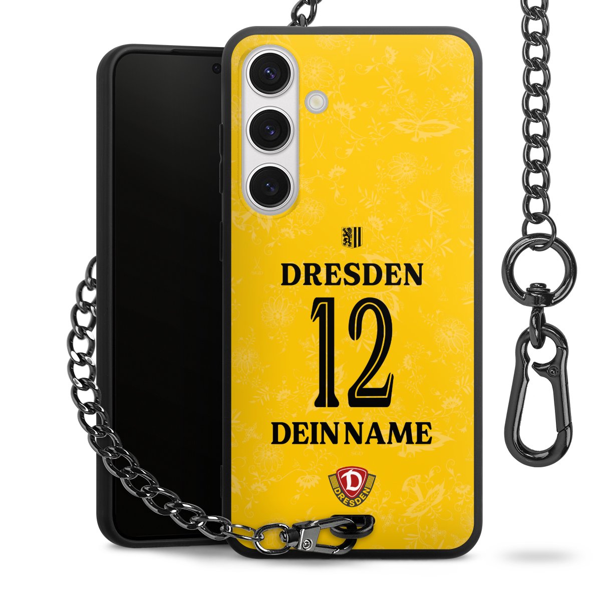 Die mattschwarze Silikon-Handyhülle besteht aus robustem TPU (thermoplastisches Polyurethan). Sie ist flexibel und schützt Dein Smartphone vor Stößen und Kratzern. Die Kette sowie der Karabinerhaken sind aus Metall in Gunmetal-Optik gefertigt. Für dieses Produkt kommen ausschließlich TÜV-geprüfte Materialien zum Einsatz.
