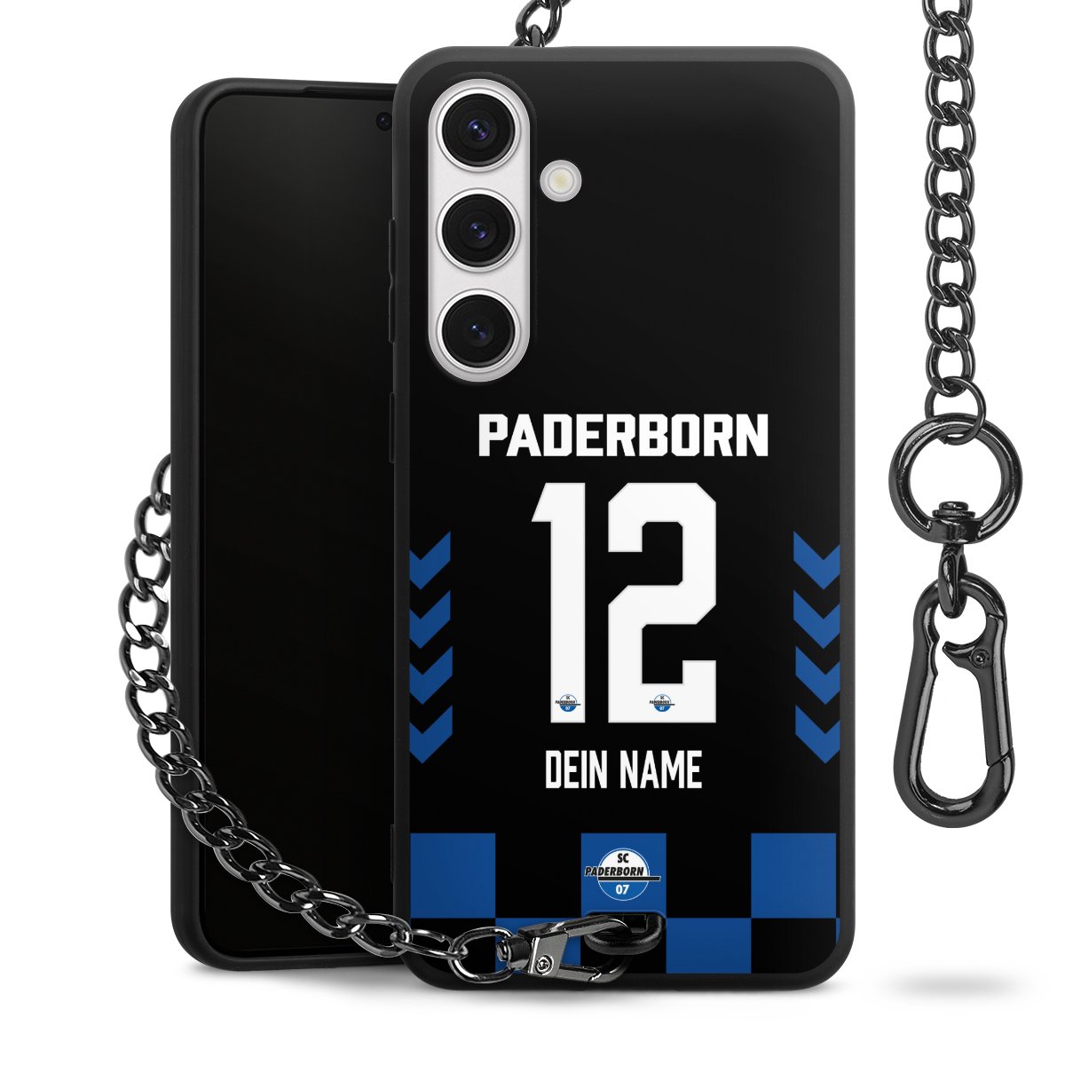 - Mattschwarze Handyhülle mit Metallkette