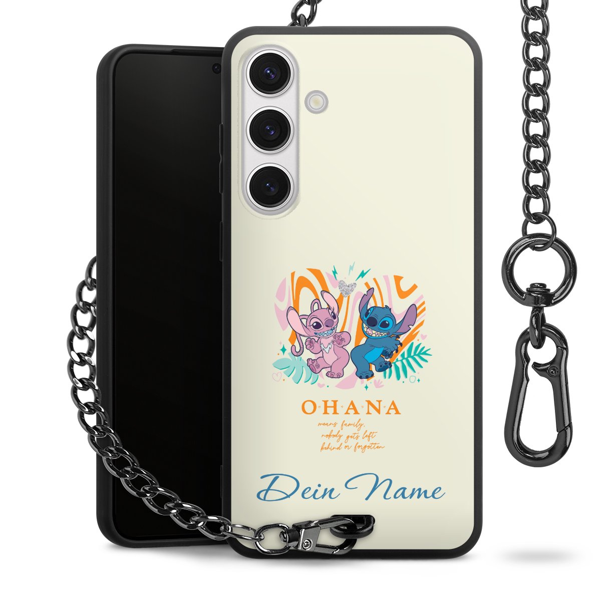 - Mattschwarze Handyhülle mit Metallkette