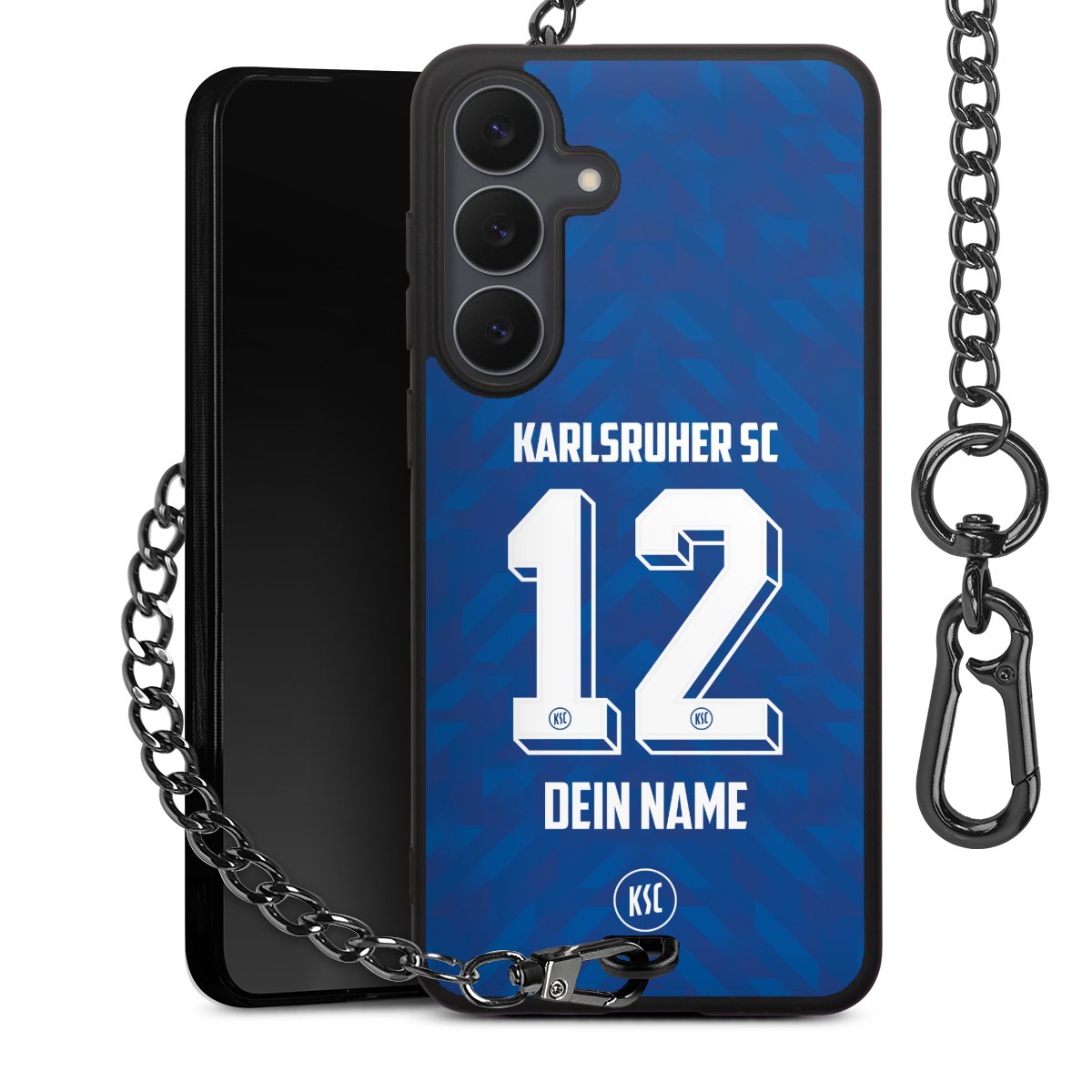 - Mattschwarze Handyhülle mit Metallkette