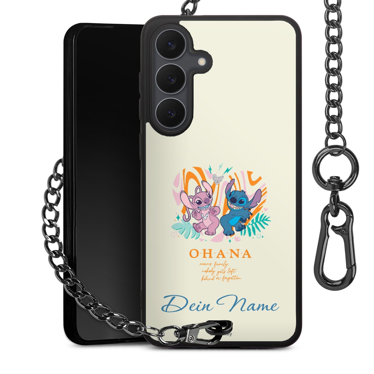 - Mattschwarze Handyhülle mit Metallkette