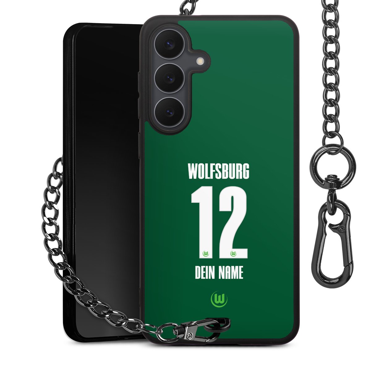 - Mattschwarze Handyhülle mit Metallkette