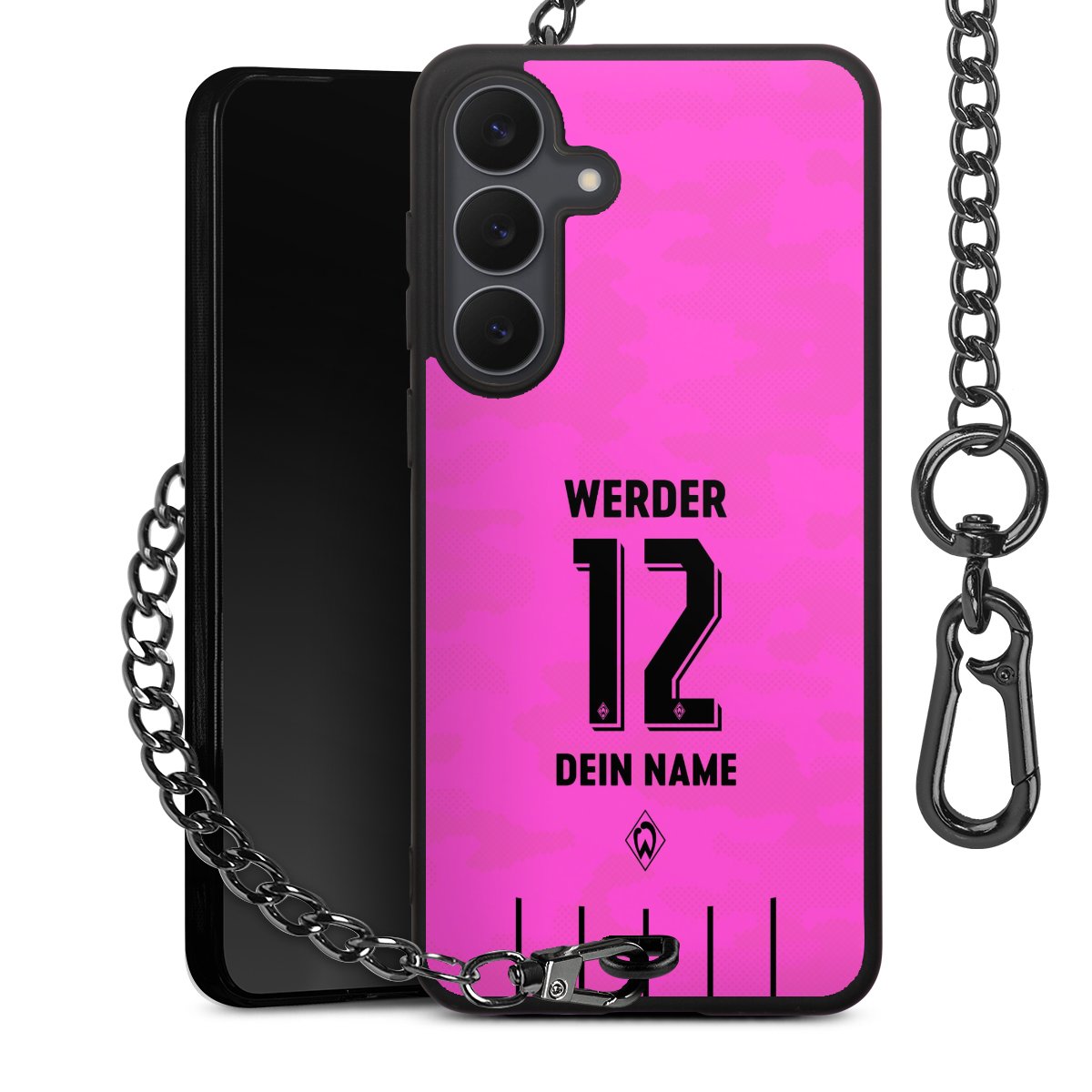 - Mattschwarze Handyhülle mit Metallkette