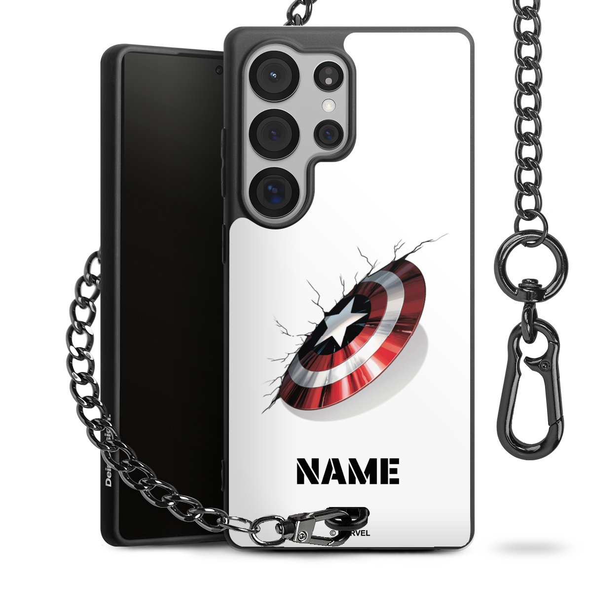 - Mattschwarze Handyhülle mit Metallkette
