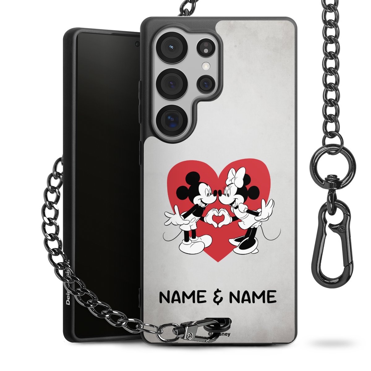 - Mattschwarze Handyhülle mit Metallkette