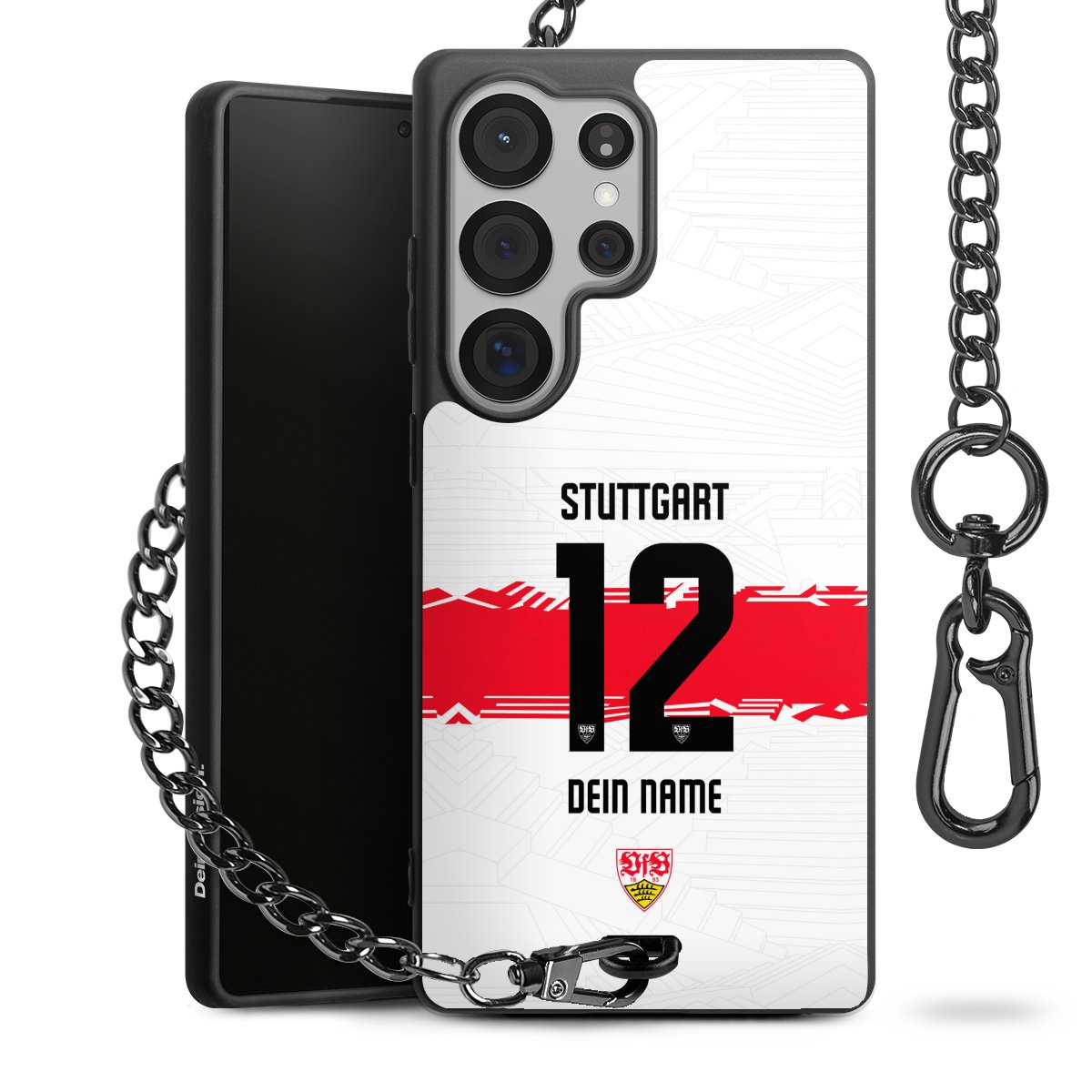 Die mattschwarze Silikon-Handyhülle besteht aus robustem TPU (thermoplastisches Polyurethan). Sie ist flexibel und schützt Dein Smartphone vor Stößen und Kratzern. Die Kette sowie der Karabinerhaken sind aus Metall in Gunmetal-Optik gefertigt. Für dieses Produkt kommen ausschließlich TÜV-geprüfte Materialien zum Einsatz.
