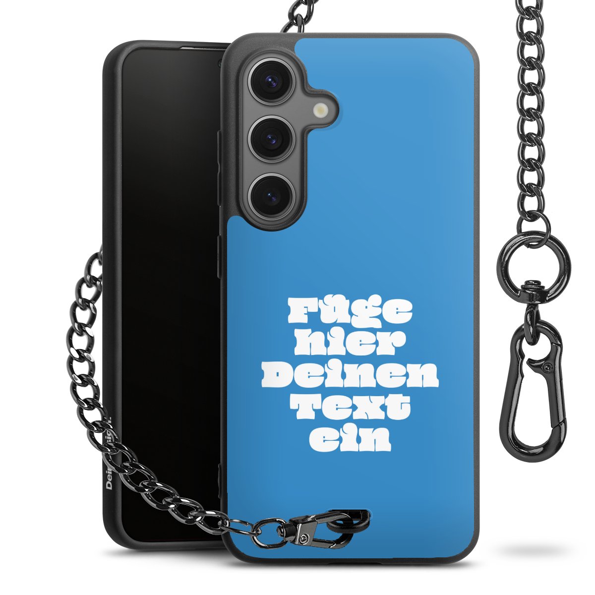 - Mattschwarze Handyhülle mit Metallkette