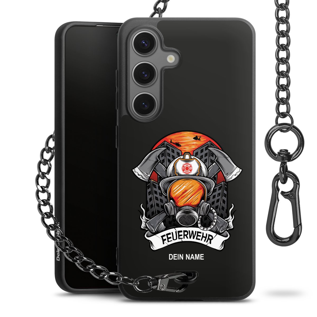 - Mattschwarze Handyhülle mit Metallkette