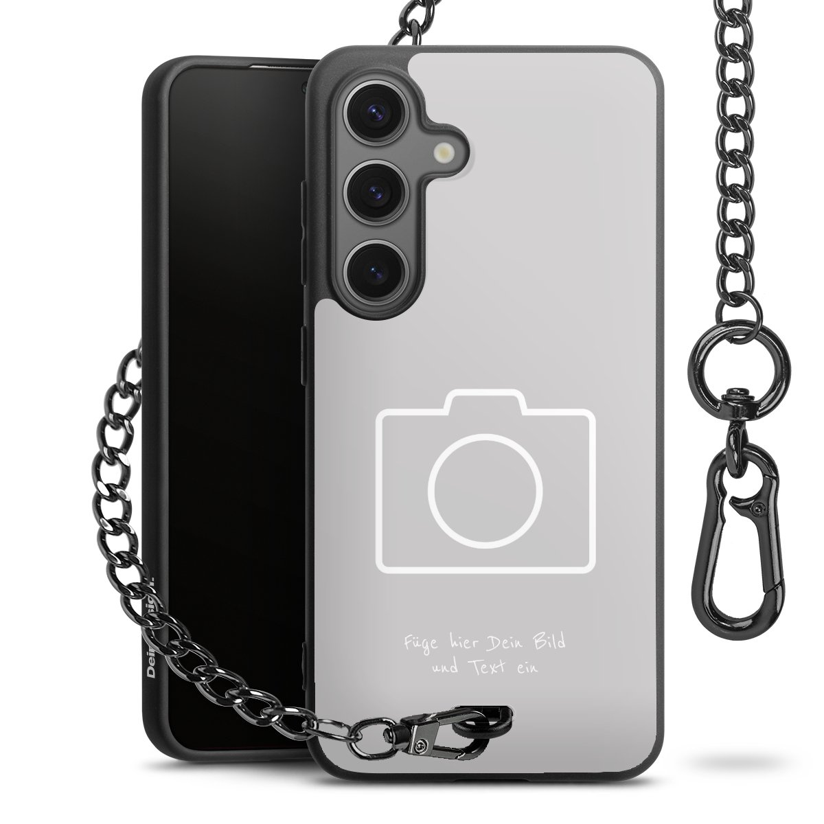 - Mattschwarze Handyhülle mit Metallkette