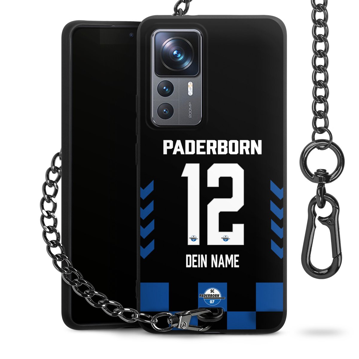 - Mattschwarze Handyhülle mit Metallkette