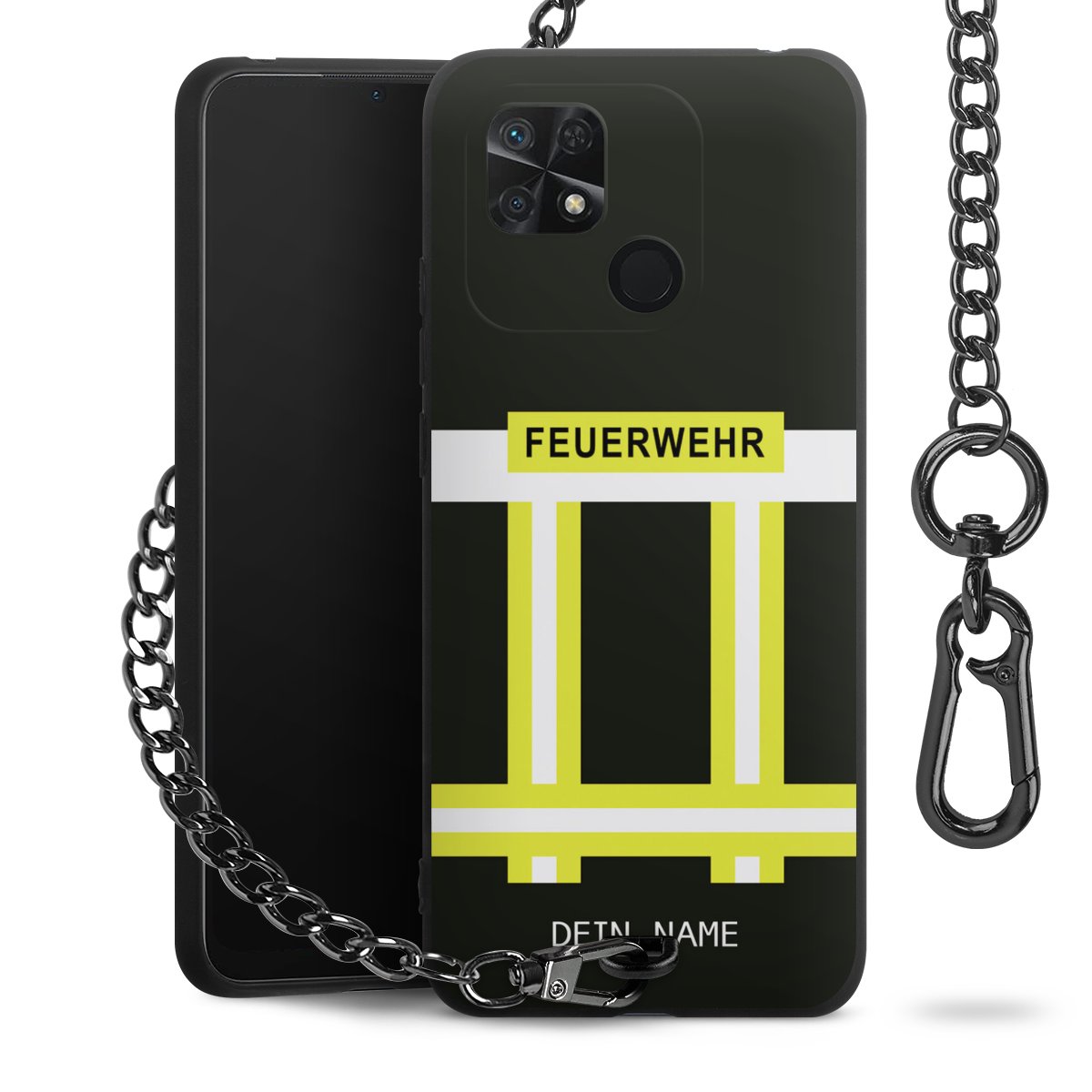 - Mattschwarze Handyhülle mit Metallkette