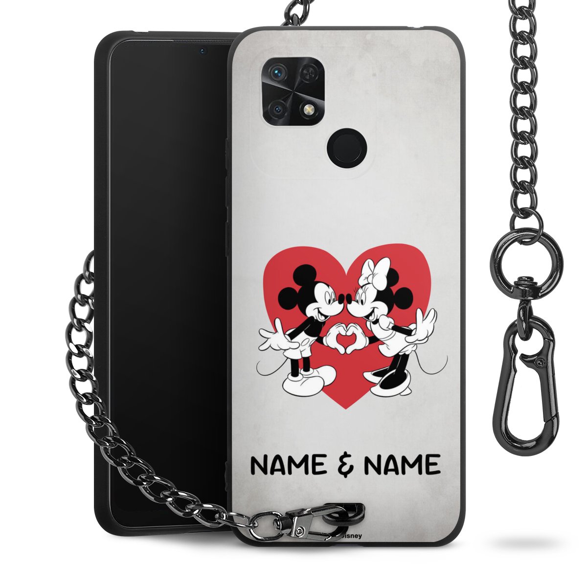 - Mattschwarze Handyhülle mit Metallkette