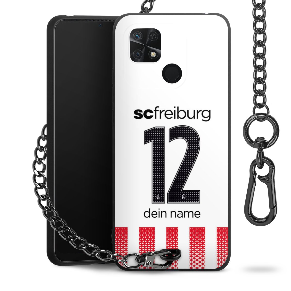 Die mattschwarze Silikon-Handyhülle besteht aus robustem TPU (thermoplastisches Polyurethan). Sie ist flexibel und schützt Dein Smartphone vor Stößen und Kratzern. Die Kette sowie der Karabinerhaken sind aus Metall in Gunmetal-Optik gefertigt. Für dieses Produkt kommen ausschließlich TÜV-geprüfte Materialien zum Einsatz.