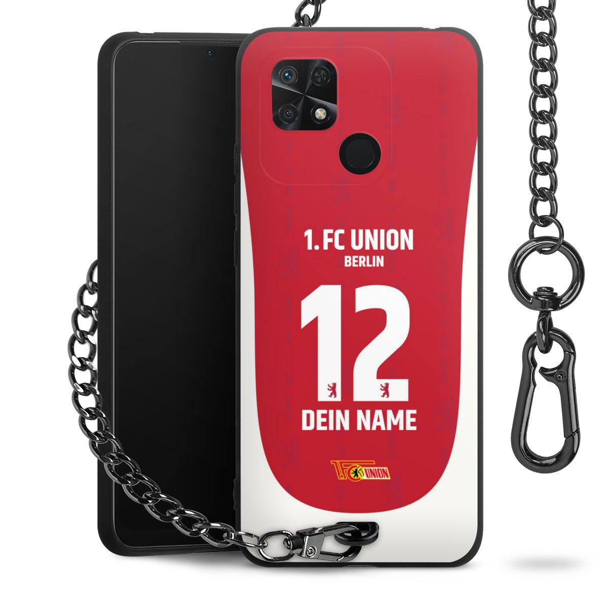 Die Handyhülle verfügt über eine mittig am unteren Rand platzierte Öse, an der die Metallkette stabil befestigt ist. Bestelle die Hülle einfach für Dein Smartphone-Modell, dann passt sie wie angegossen und Du brauchst sie bloß einmal anzudrücken. Handy in die Tasche, Karabiner an den Hosenbund – schon kann die Party starten.