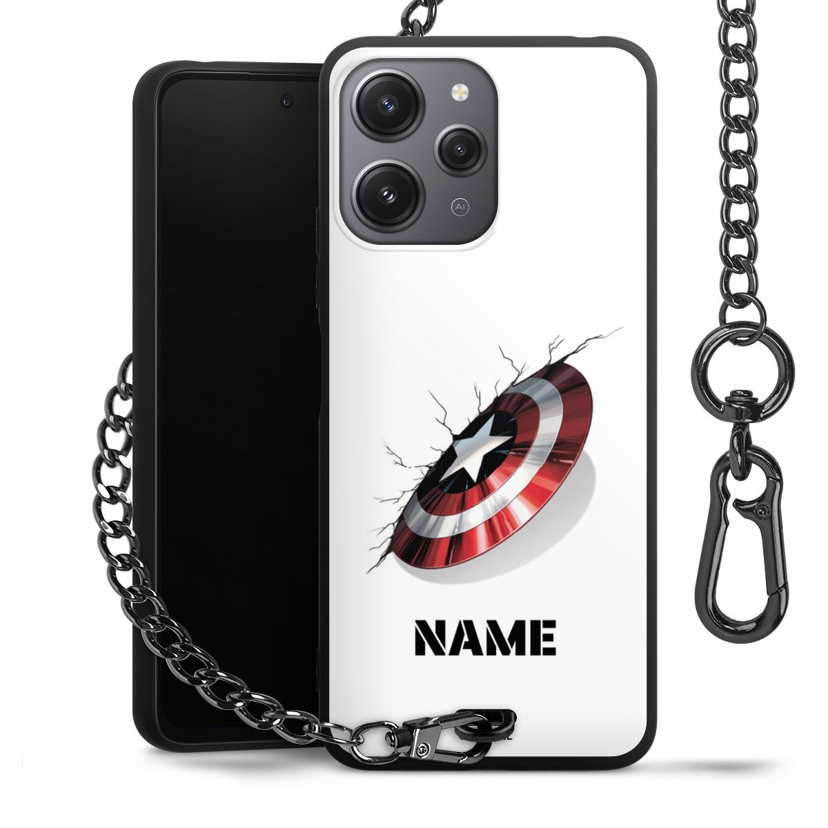 - Mattschwarze Handyhülle mit Metallkette