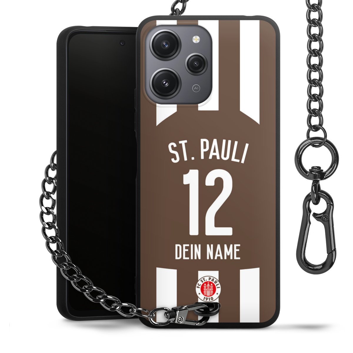 - Mattschwarze Handyhülle mit Metallkette