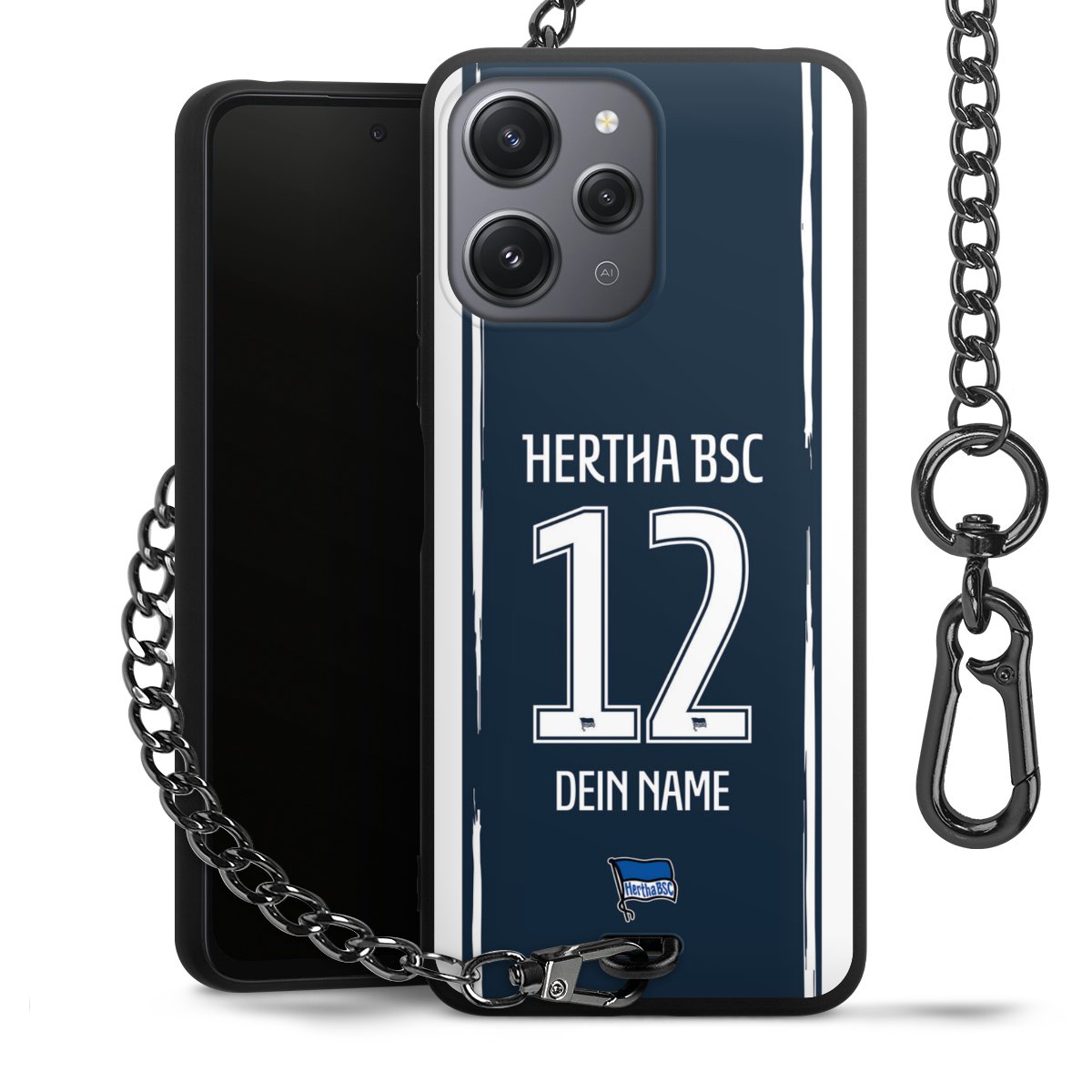 Die mattschwarze Silikon-Handyhülle besteht aus robustem TPU (thermoplastisches Polyurethan). Sie ist flexibel und schützt Dein Smartphone vor Stößen und Kratzern. Die Kette sowie der Karabinerhaken sind aus Metall in Gunmetal-Optik gefertigt. Für dieses Produkt kommen ausschließlich TÜV-geprüfte Materialien zum Einsatz.