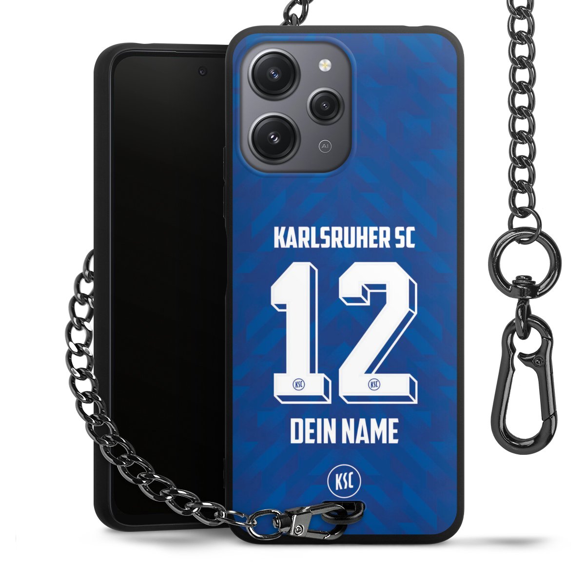 - Mattschwarze Handyhülle mit Metallkette