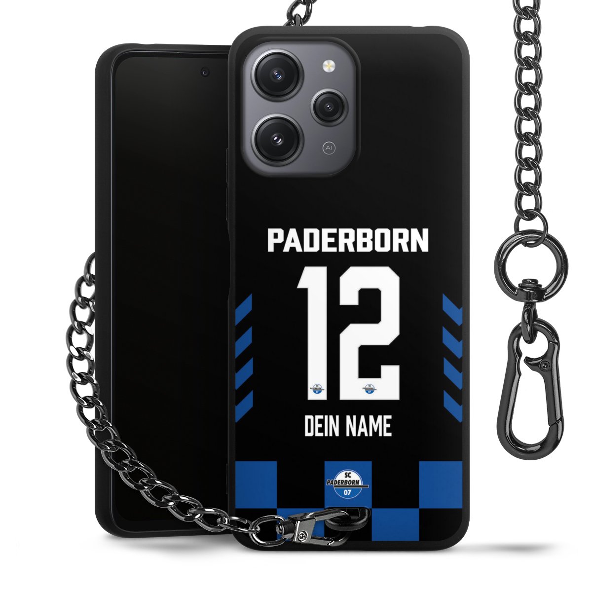 - Mattschwarze Handyhülle mit Metallkette