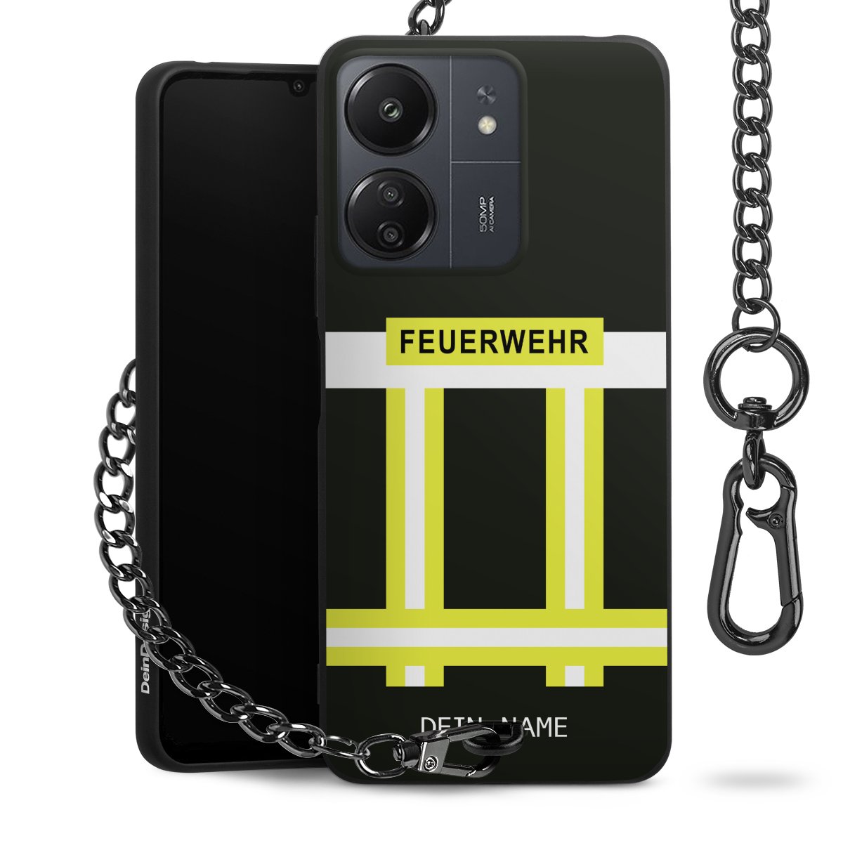 - Mattschwarze Handyhülle mit Metallkette